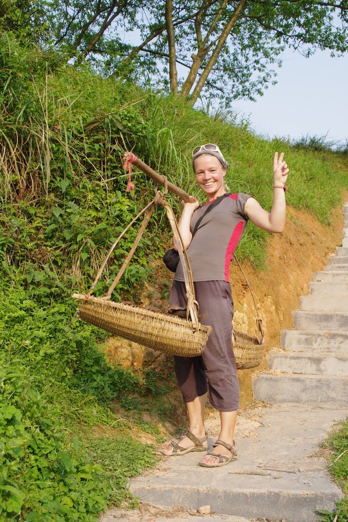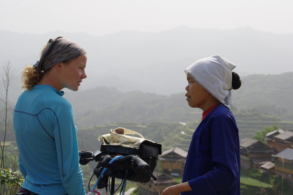 Nous empruntons les chemins de pierres pour accéder à un point de vue. En chemin, nous observons ces femmes dans leurs tenues typiques affairées à préparer les terrasses pour la saisons des pluies prochaine. Nous commençons à penser que ce n’est peut être pas que pour les touristes et que le folklore est toujours vivant. Dans ces pays de montagnes, les chevaux ont remplacés les bœufs des plaines pour aider l’homme. Alors que Brigitte s’accorde une après midi de relaxation à observer les allers-retours des locaux dans leurs tâches quotidiennes, nous partons en direction de Ping’An, un second village à quelques heures de marche.