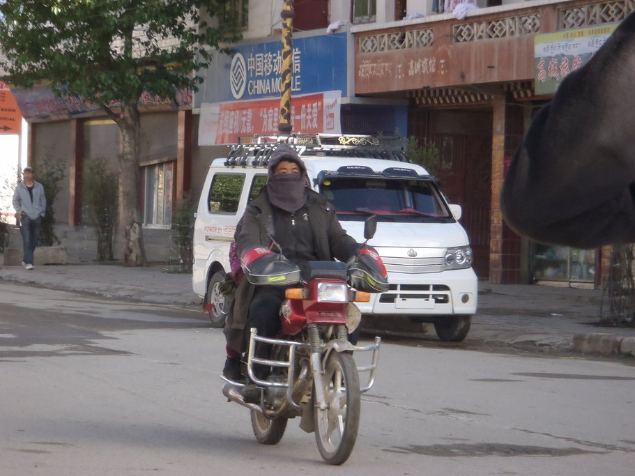 Sa destination finale est un peu avant la ville de Luding où nous espérons trouver un bus. À peine avons nous posé un pied hors du camion qu’une voiture s’arrête à notre hauteur. “Vous allez à Luding ?” Parfait ! La dame qui nous embarque semble s’être improvisée taxi et nous propose un tarif très honnête. Elle nous dépose devant la gare de bus où justement attend un taxi avec deux places de libres pour un départ immédiat vers Kangding où nous retrouvons avec joie notre charmant hôtel.