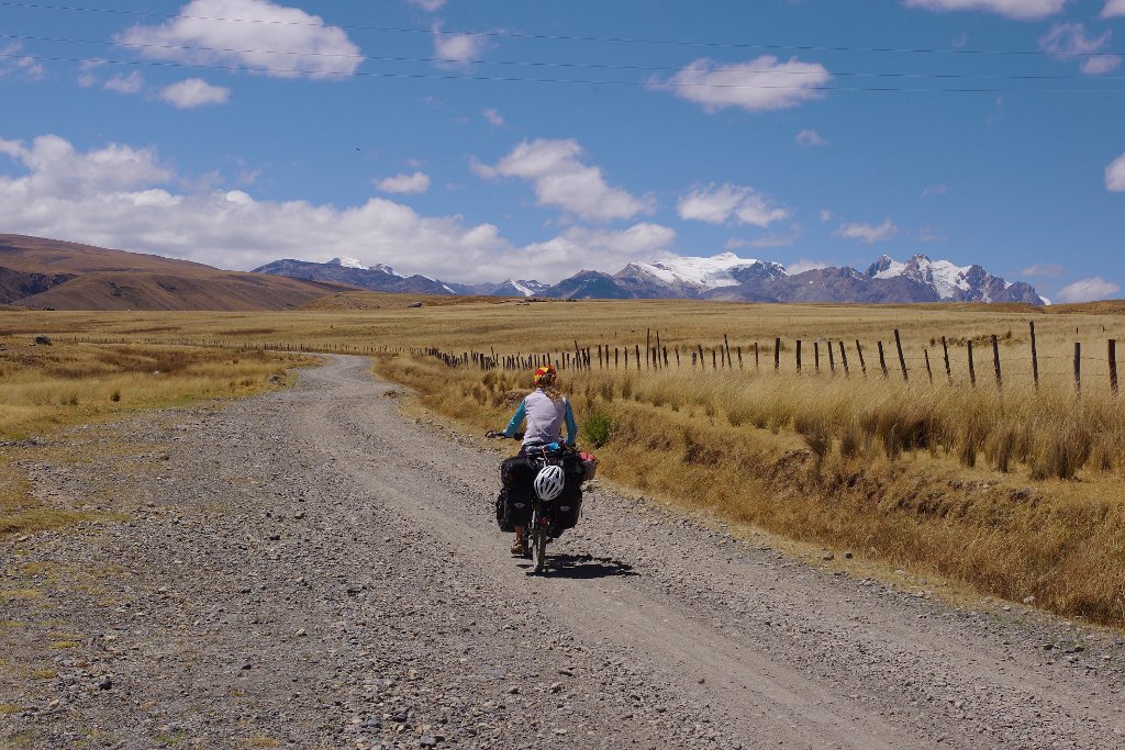 Tôt le matin, nous décollons de la pension en direction du terminal de bus. Les vélos sont mis sur le toît et il n’y a plus qu’à attendre quelques minutes que le mini bus se remplisse suffisamment pour démarrer. Au fur et à mesure du trajet, des gens montent et descendent, puis vient notre tour au niveau de la ville de Catac. Seb veux en faire un peu trop et évite de peu la catastrophe. Au final ce ne sera qu’une blessure légère, très vite oubliée. Quelques kilomètres sur la route, puis à Pachacoto, nous prenons la direction du Parque Nacional de Huascaran sur une piste en trocha comme nous les aimons tant. Blague à part, après notre journée de Nationale 3, nous avons fini par apprécier le charme des pistes de trocha qui ont le grand mérite d’être beaucoup moins fréquentées et de passer par des endroits superbes.
